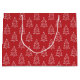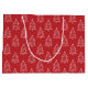 Eine große Geschenktasche mit weißem Weihnachtsbaummuster auf dunkelrotem Hintergrund. Anpassen der dunkelroten Hintergrundfarbe, Mustergröße unter anderen Optionen.