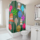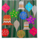Dieser Duschvorhang hat ein Design, das wie Ornamente in Rot, Grün, Blau, Rosa, Gold, Silber und Weiß auf einem Weihnachtsbaum aussieht.