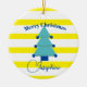 Verändern Sie Ihre Weihnachtswünsche mit diesem modernen Weihnachtsdesign. Noch immer mit den traditionellen saisonalen Farben verwendet dieses Design gelb und blau . Das blaue Freie hat Dekorationen. Ändern Sie das Bild für Ihr eigenes Foto. Moderne und einfache Weihnachtsgrüße.