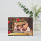 Ein normales rechteckiges Foto füllt die Vorderseite dieser Karte mit minimalen Anpassungen. Das unterste Goldband hält Ihre Namen und Weihnachten Gruß in einem schwarzen Schriftart und wird im Inneren wiederholt. Sie können den gesamten Text auf der Innenseite personalisieren und es gibt Platz für Sie, um eine handgeschriebene persönliche Note hinzuzufügen, wenn Sie möchten.