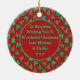 Ein doppelseitiges Baum-Ornament, das ein lustiges, rotes und grünes Weihnachtsbaummuster mit dem Foto Ihres Sohnes in der Mitte aufweist. Auf der Rückseite eine Weihnachtsbotschaft an Ihren kleinen Jungen. Um den Text zu ändern oder zu löschen, klicken Sie auf die Schaltfläche Personalisieren. Dieses Design enthält A.I.
