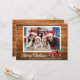 Ein wunderschönes rustikales Holzstil "Frohe Weihnachten" Kalligraphie-Skript, Ihr Foto, Name mit Jahr oder anderen Text und ein Vintager roter LKW mit Weihnachtsbäumen. Personalisieren Sie Ihre Nachricht auf der Kartenrückseite für die perfekte Touch.