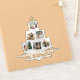 Personalisierte Weihnachtsaufkleber mit einer Foto-Collage in Weihnachtsbaumform mit 6 Bildern und eleganter, minimalistischer Typografie in Goldfarbe.