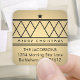 Fügen Sie Ihren Grußkarten, Einladungen oder Geschenkkörben eine elegante Touch hinzu, mit diesen modernen, schwarzen, cremefarbenen und Imitaten goldenen, glänzenden Rücksendeadressen-Aufklebern / Umschlag Aufklebern. Der gesamte Text ist einfach für den persönlichen oder geschäftlichen Gebrauch. Personalisieren Sie Ihre Daten mit dem Namen, der Adresse oder anderen Informationen der Familie oder des Unternehmens. Das Design besticht durch ein stilvolles geometrisches Weihnachtsbaumdesign mit einem Stern oben und "Frohe Weihnachten" in einem typografischen Stil, der vom Vintagen Deko inspiriert wurde. Gute Ferien!