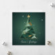 Eine elegante und stilvolle Weihnachtskarte mit einem abstrakten geometrischen Baum, der aus dreieckigen Formen in smaragdgrünen, schlauen und metallischen Gold gefertigt wurde. Knusprige Linien und minimalistische Schneeflocken auf weißem Hintergrund verleihen dem Ganzen eine zeitgenössische Touch. Der elegante Sans-Serif Text 'Season's Greetings' vervollständigt diese Design-Forward Ferienkarte.
