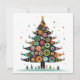 Sie können die Stimmung auf der Rückseite dieser flachen Weihnachtsgrüßkarte ändern. Der bunt zauberhafte Weihnachtsbaum an der Vorderseite wird sicherlich den Feiertagssjubeln vermitteln. AI unterstützte Grafik, die mit kommerziellem Einsatz erworben wurde. Kunstwerk: RedHeronLighthouse
