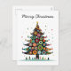 Sie können die Stimmung auf dieser Weihnachtspostkarte ändern. Der bunt zauberhafte Weihnachtsbaum an der Vorderseite wird sicherlich den Feiertagssjubeln vermitteln. AI unterstützte Grafik, die mit kommerziellem Einsatz erworben wurde. Kunstwerk: RedHeronLighthouse