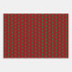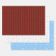 Set von 3 Weihnachtsbaum Holiday Snowman Snowflake Geschenkpapier Blätter Wrapping. Grüne Bäume auf rotem Hintergrund, schwarz-weiße Schneemänner und weiße Schneeflocken auf hellblauem Hintergrund.