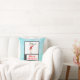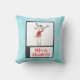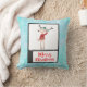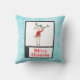Kissen mit einer niedlichen skurrilen Illustration eines lustigen Weihnachtsrentiers in einem hässlichen Pullover, perfekt für die Ferienzeit. Er ist auf 2 Beinen stehend und winkt hallo. Er hat große Geweihe und eine niedliche, grün gestrickte Wintermütze. Im folgenden Text heißt es frohe Weihnachten in einem handgeschriebenen Schriftart in festlich roter Farbe. Der Hintergrund ist ein blaues, frostig aussehendes Aquarelldesign.