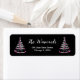 Dieses elegante und schicke Retourenlabel besticht durch einen rosa und schwarzen Weihnachtsbaum mit einem Sterntopfer. Der Text kombiniert handgeschriebene Skripte mit modernen serifenlosen Schriftart für ein elegantes und raffiniertes Aussehen. Der fallende Schnee, Schneeflocken und Glitzern geben eine festliche und magische Touch. Das ist perfekt für Weihnachten und die Ferienzeit.