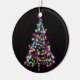 Die Lichter eines Weihnachtsbaumes bilden einen atemberaubenden Bukaheffekt in Rosa, Blau, Grün und lila auf Schwarz.