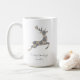 Elegant und trendig, ist diese Weihnachtsfeier-Tasse ein stilvolles Geschenk für Wintergetränke der Erwärmung. Verfügt über ein Vintages, blaues Häkelchinoiserie-Muster hinter einer niedlichen Rentier-Silhouette.
