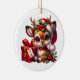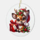 Die Weihnachtsbaumschmuck-Keramik ist in runder Form mit einem festlichen Weihnachtswildprint dargestellt. Passen Sie dieses Objekt an oder kaufen Sie, wie es ist. Lizenzierte Printwerbung