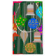 Diese Geschenktasche hat ein Design, das wie Ornamente in rot, grün, blau, rosa, gold, silber und weiß auf einem Weihnachtsbaum aussieht.