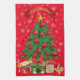 Dieses sehenswerte Weihnachtsbaum mit roten Bauern und einem goldgelben Stern oben, mit Weihnachtsgeschenken, ist ein fröhliches und skurriles Weihnachtsküchentuch in kräftigen Farbtönen und Sets. Ein besonderes Urlaubsprojekt, das es Ihnen ermöglicht, Ihre Küche für den Urlaub zu dekorieren.