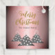 Moderner Weihnachtsbaum Metallic Pink Familie Feiertag Tag. Drei einfache graue Weihnachtsbäume mit weißen Kugeln. Der Hintergrund ist metallisch rosa und der Text Frohe Weihnachten ist in trendiger Schrift. Passen Sie Ihren Text an.