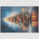Decoupage Gewebepapier mit einem großen Weihnachtsbaum mit einem hellen goldenen Stern und einem kühnen dunkelblauen Hintergrund.