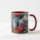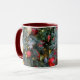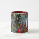Weihnachtsbaum mit goldenem, rotem Spielzeug. Tasse