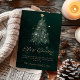 Senden Sie zeitlose Weihnachtswünsche mit dieser eleganten Weihnachtskarte, die eine schön von Hand gemalte Tanne vor einem dunkelgrünen Hintergrund zeigt. Der schimmernde goldene „Merry Christmas“-Schriftzug fügt eine festliche luxuriöse und anspruchsvolle Note hinzu — perfekt für Grüße an Familie, Freunde oder Geschäftspartner.