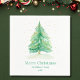 Ein Weihnachtsbaum in Aquarellfarbe mit schimmernden Goldschneeflocken und sanften Schneeflocken, die gegen einen coolen Winterhimmel treiben und einen eleganten, minimalistischen Charme erwecken.