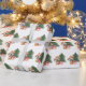 Aquarellgrüner Kiefernbaum mit niedlichem Hund und Weihnachtsgeschenk auf Weiß. Die Hintergrundfarbe kann geändert werden.