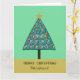 Hier ist ein lustiger gemusterter Weihnachtsbaum mit farbigen Lichtern an. Der Name der Nachricht und die Hintergrundfarbe sind vollständig anpassbar.