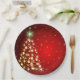 Weihnachtsbaum mit Sternen. Feiertags-Tellerentwurf. Entwurf der grafischen Kunst mit Herzen. Fertigen Sie Ihren eigenen Text auf dem PapierTeller besonders an