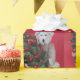 Generikales Füttertier mit Miniatur dekorierten Weihnachtsbaum auf rot