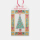 Weihnachtsbaum mit Verzierungen roten Bögen Glocke Geschenkanhänger