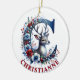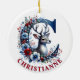 Mit diesem C Monogram Weihnachtsschmuck fügen Sie Ihrem Urlaubsstil eine skurrile Touch hinzu! Dieses charmante Design zeigt einen Rentier, der spielerisch durch die Öffnung des Buchstabens "C" guckt und dem Baum feierlichen Beifall bringt. Rote und blaue Winterfloralen klettern anmutig entlang des Halbkreises des Briefes und schaffen so ein lebendiges und elegantes Urlaubsmotiv. Mit einem bearbeitbaren Namensbereich ist dieses Ornament perfekt für die Personalisierung geeignet, was es zu einem sinnvollen Geschenk oder einer herausragenden Ergänzung Ihrer eigenen Sammlung macht. Bearbeiten Sie den Text von der Produktseite oder ändern Sie den Stil oder die Farbe des Schriftartes mithilfe des Entwurfstools. Feiern Sie die Jahreszeit mit diesem wunderschön gestalteten Ornament, das perfekt für einen personalisierten und festlichen Flair in Ihren Urlaub ist!