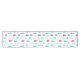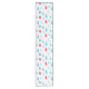 Weihnachtstischläufer mit blauen, roten, rosa Weihnachtsbaummustern auf weißem Hintergrund mit fröhlichen nordischen Farben. Kate Eden Art