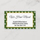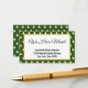 Sie können schwarzen Text mit Ihrem Namen und Ihrer neuen Adresse personalisieren. Oben können Sie das elegante schwarze Skript anpassen, das "Wir haben uns bewegt". Um das Textfeld herum befindet sich ein Imitat Goldfräser. Diese grüne Feiertagsansage hat ein Muster von weißen Weihnachtsbäumen auf der Vorder- und Rückseite.