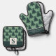 Weihnachtsbaum Muster Sage Green Mit Monogramm Ofenhandschuh & Topflappen-Set