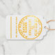 Feierlich nicht öffnen 'bis Weihnachten ist in der Mitte geschrieben. Der 25. Dezember ist oben geschrieben. Der Weihnachtsmann am Nordpol. Gold weiß vorne. Die Rückseite hat einen Weihnachtsbaum mit Ornamenten und gelben Stern. HO! HO! HO! Frohe Weihnachtstypografie in schwarz geschrieben vor hellbraunem Hintergrund. Original Artwork Design von TamiraDesigns.