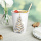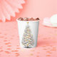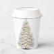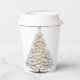 eleganter Weihnachtsbaum mit bunten Lichtern und Dekorationen vor weißem Hintergrund