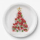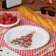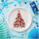 Ein Weihnachtsbaum aus Ornamenten und Geschenkpackungen schmückt diesen hübschen Papierteller