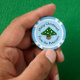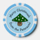 Ein Cartoon-Pilz mit einer grünen Kappe wie ein Weihnachtsbaum wünscht sich ein "fröhliches Christmush" aus der Familie.