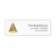 Illustration eines weihnachtbaumförmigen Pizzasschnittes mit roten und grünen Tellern und einem Stern.