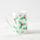 Rote und grüne Weihnachtsholzmuster auf weißer China Tasse
