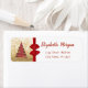 Adorable Weihnachtsbaum und roter Bogen auf glänzendem goldglänzendem Hintergrund. Ein elegantes und raffiniertes Design.Costumize mit Ihrem Namen und Adresse Details.