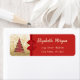 Adorable Weihnachtsbaum und roter Bogen auf glänzendem goldglänzendem Hintergrund. Ein elegantes und raffiniertes Design.Costumize mit Ihrem Namen und Adresse Details.