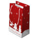 Moderne, schlichte Weihnachtsbilder mit weißen Silhouetten von Rentieren, Baum, Schneemann und Schneeflocken mit fröhlichen Weihnachtsgrüßen auf rotem Hintergrund.