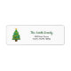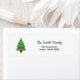Kehren Sie Ihre Adresse mit einem Weihnachtsbaum und seinen Garnelen, seinen Baubles und seinem Stern an der Spitze zurück. Sie können sie für Ihr Geschäft oder wenn Sie Weihnachtskarten und Geschenke an Ihre Freunde und Familie schicken.