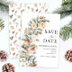 Genießen Sie die Raffinesse unserer rustikalen Weihnachtsfeiertage Save the Date mit Einladungen. Mit einem zarten Kranz von Kiefernästen, Goldschneeflocken und weißen/goldenen Blume erheben diese Einladungen die Vorfreude auf Ihre Hochzeit. Ideal, um Ihrem besonderen Tag eine Touch von Eleganz und Charme hinzuzufügen.
