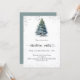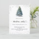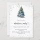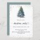 Eine Wintereinladung für ein Weihnachtsfest im Party. Ein weißer Hintergrund auf der Vorderseite mit einem von Hand gezeichnet, wasserfarbenen Kiefernbaum mit schneebedecktem Imitat und glitzerndem Glitzer. Personalisieren Sie Ihre Party-Daten und fügen Sie sie hinzu. Zurück: blaugrüner Hintergrund. Fügen Sie Ihre Website url zum QR-Code für UAWG- und/oder Party-Details hinzu.