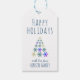 Feierlicher Weihnachtsurlaub personalisierte Geschenkmarke. Personalisieren Sie das Tag mit Ihrem Text und Ihrer persönlichen Note. Schöner und einzigartiger Weihnachtsbaum aus Schneeflocken und Happy Ferien Text auf weiß. Machen Sie Ihre Weihnachtsgeschenke für Familie und Freunde besonders mit diesem individuellen Geschenktag. Dieses Geschenk-Tag passt zu anderen Weihnachtsgeschenken in der Weihnachtsbaumkollektion Snowflake.