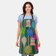Diese Schürze hat ein Design, das wie Ornamente in Rot, Grün, Blau, Rosa, Gold, Silber und Weiß auf einem Weihnachtsbaum aussieht.