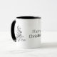 Elegante und einfache Weihnachtsferien-Tasse. Schwarz-Weiß-Weihnachtsbaum mit Urlaubswünsche. Der Text Frohe Weihnachten ist anpassbar, sodass Sie ihn ändern oder löschen können. Es ist eine perfekte Geschenkidee für Ihren Urlaub.