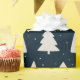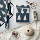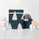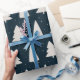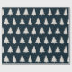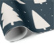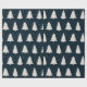 Dieses Weihnachtspapier mit weißen Kiefern Silhouetten und kleinen weißen Schneeflocken auf einem eleganten und modernen dunkelblauen Hintergrund.