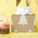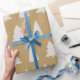Dieses Weihnachtspapier mit weißen Kiefern Silhouetten und kleinen weißen Schneeflocken auf elegantem goldenen Hintergrund.